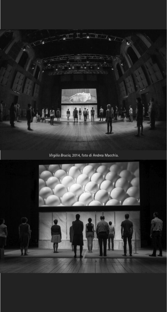 Il IV capitolo, Costellazioni del mito attraversa la costellazione di artisti che, raccolti dalla scena italiana, si sono confrontati con il mito. Il mito da non intendersi nell’accezione di narrazione, fabula, ma di azione incorporata, immanente alla scena, materia plastica e frammentaria. Il paradigma morfologico, che appartiene alla duttilità del mito, riconosce allora forma del non finito, o del non finibile, la struttura modulare, episodica come caratteristica di molte restituzioni sceniche del tragico. È il caso delle Metamorfosi (2015) di Roberto Latini per Fortebraccio Teatro, di Santa Estasi (2016) di Antonio Latella. Ma è anche il caso dell’Edipo dei Mille (2011) del Teatro del Lemming che, riprendendo uno spettacolo-manifesto della compagnia del 1997, rinnova il rapporto con il pubblico portando all’attenzione un senso del tragico che deve fare i conti con la pluralità, la comunità, e l’esigenza di un teatro politico. Il paradigma morfologico decritta anche la relazione tra spettacolo e luogo in cui viene collocato, rilevando la dimensione immersiva e simbiotica che ne fanno l’unicità, come nel caso di Alcesti (2014) di Massimiliano Civica; o come nella sperimentazione modulare e documentarista costantemente differita nella metateatralità del progetto Syrma Antigones (2008-2011) di Motus. Mentre Virgilio Brucia (2014) di Anagoor predilige la strumentazione estetica dell’ékphrasis per far riverberare la questione del potere del mito.